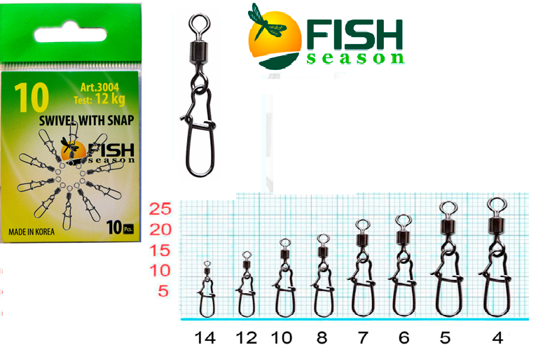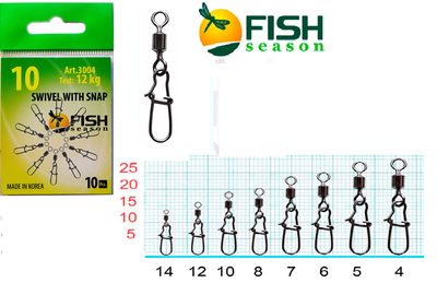 Вертлюжок с застежкой Swiwel With Snap Nice (10уп.Х10шт.) арт. 3004 Размер 10 (12кг)