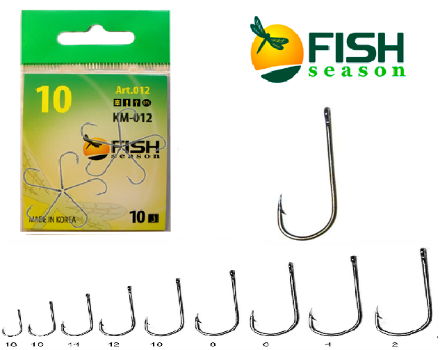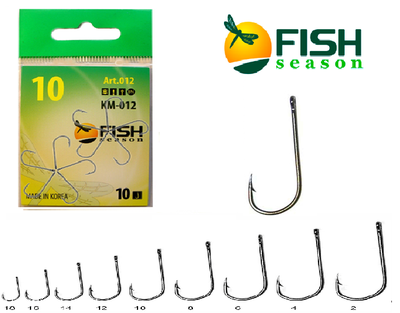 Крючки классической формы черного цвета, с колечком и удлинённым цевьём, выполнены из тонкой проволоки.