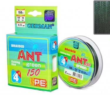 Шнур плетеный German "ANT Green x4" 150 м / 0,30 мм 288 ₽ 320 ₽ В корзину В корзину Характеристики: Длина: 150м Характеристики: Длина: 150м