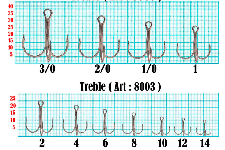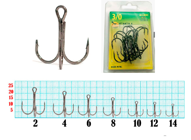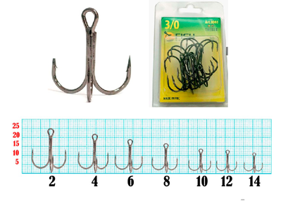 Крючок ТРОЙНИК Китай, №8, покрытие BN (уп. 10 шт.) арт. 8003