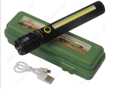 Светодиод Cree XHP50, возможность фокусировки луча «ZOOM» 2-й светодиод COB с углом освещения более 120°. Корпус фонаря выполнен из металлического сплава влагозащищенный и противоударный, индикатор заряда в кнопке включения