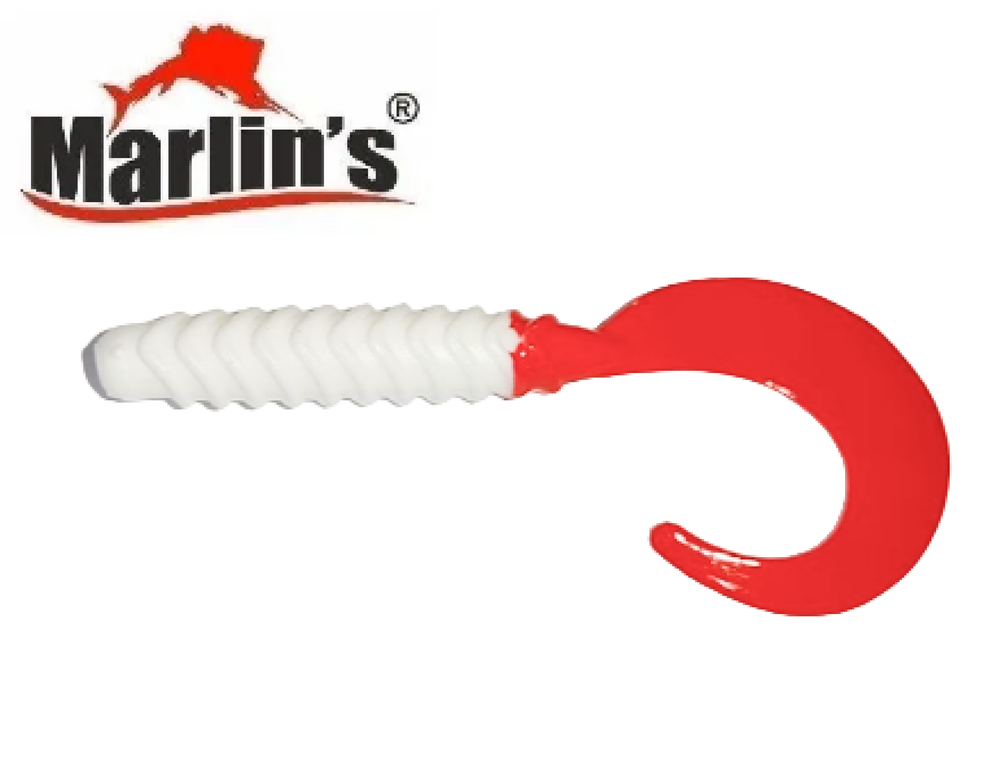Силиконовая приманка "Marlin's" Tvister TV53 Белая - Красный хвост 53мм/1,3гр (уп.-5шт.)