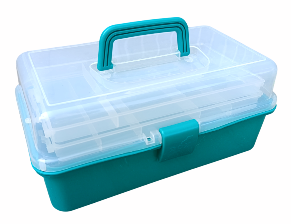 Ящик рыболовный двухполочный 33х19х14см (прозрачная крышка) зеленый