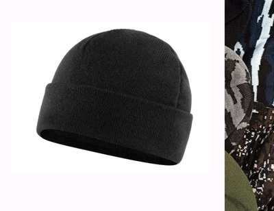 Шапка вязаная на флисе с отворотом (Цвет: Черный, зеленый, разноцветный)