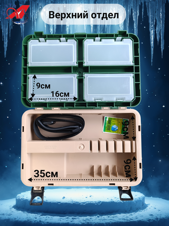 Ящик A-elita A-Box – модель средних размеров, с большим количеством отделений и встроенных контейнеров. Предназначен для упорядоченного распределения аксессуаров, принадлежностей и их доставки к месту лова. Обеспечит длительное хранение предметов с разными габаритами. Отличается широким функционалом и достаточной прочностью для зимней рыбалки. Высокий уровень герметичности и теплоизоляции, плюс жесткая конструкция гарантируют сохранность содержимого в любых условиях использования.
